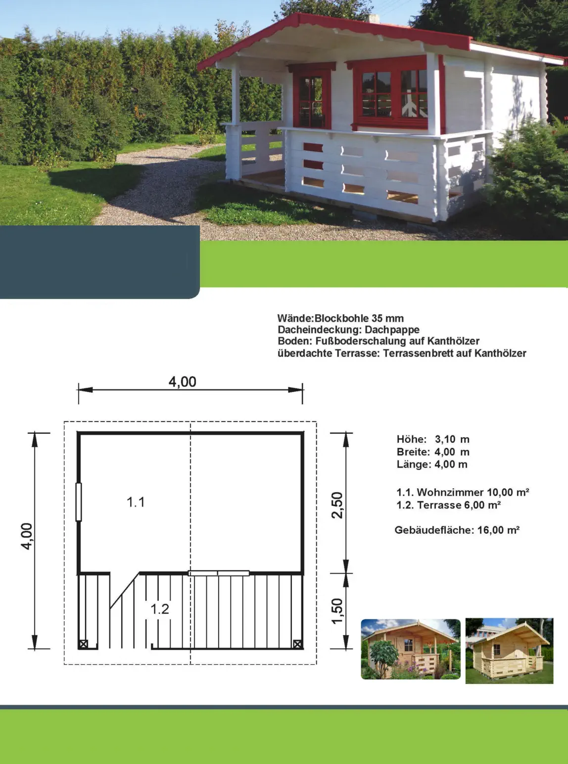 Unsere Gartenhäuser werden traditionell in Blockbohlenbauweise aus hochwertigen Materialien angefertigt. Wir bieten Gartenhäuser in der Blockbohlenstärke 35 mm an.Für die Erstellung Ihres Angebotes benötigen wir von Ihnen eine kleine Grundrisszeichnung mit Ihrem Wunsch der Raumaufteilung sowie die Anordnung der Tren und Fenster.